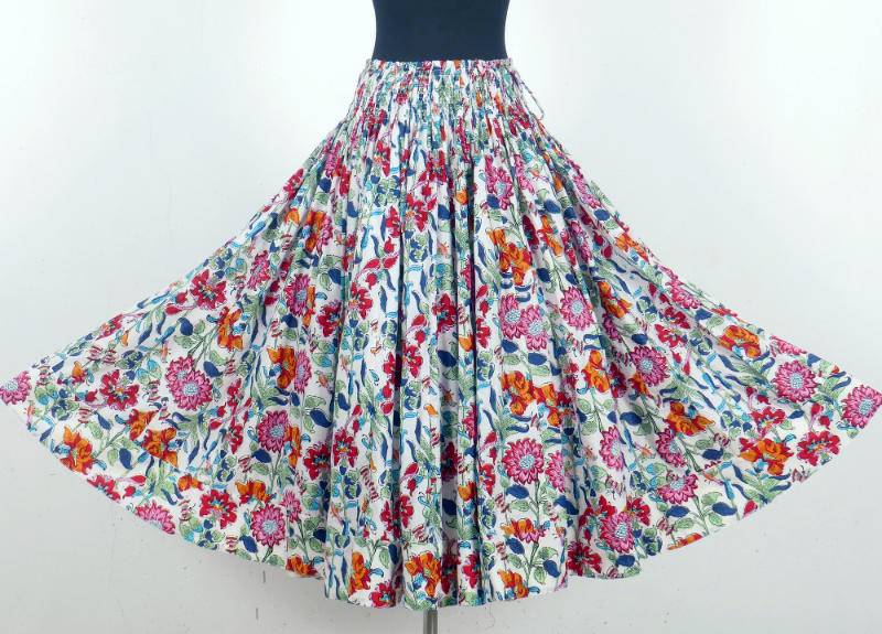 Die schön schwingenden Röcke sind aus sechs Metern hochwertigen Baumwollstoffs gefertigt. Sie haben einen hohen, gesmokten Stretch-Bund und passen bequem allen Größen von XS bis XXL. Es gibt sie in drei Längen, lang, kniebedeckt und kurz (L/M/S)