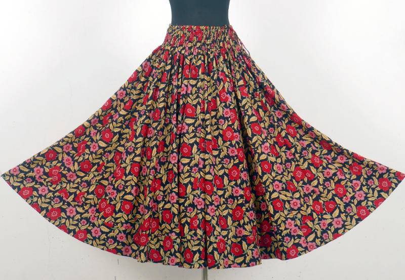 Die schön schwingenden Röcke sind aus sechs Metern hochwertigen Baumwollstoffs gefertigt. Sie haben einen hohen, gesmokten Stretch-Bund und passen bequem allen Größen von XS bis XXL. Es gibt sie in drei Längen, lang, kniebedeckt und kurz (L/M/S)