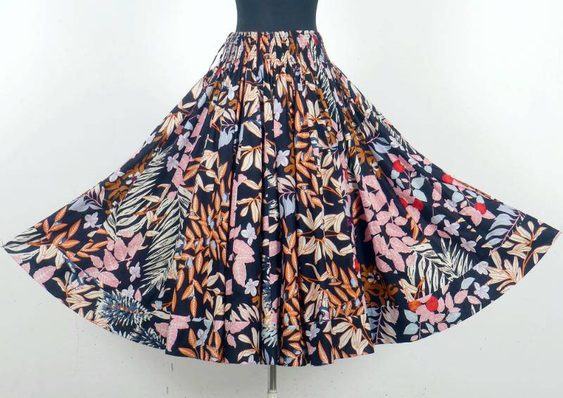 Die schön schwingenden Röcke sind aus sechs Metern hochwertigen Baumwollstoffs gefertigt. Sie haben einen hohen, gesmokten Stretch-Bund und passen bequem allen Größen von XS bis XXL. Es gibt sie in drei Längen, lang, kniebedeckt und kurz (L/M/S)