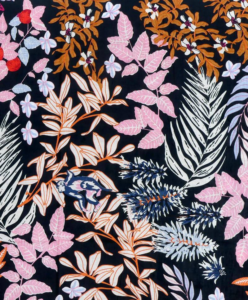 Material: sechs Meter teils handbedruckter Baumwollstoff