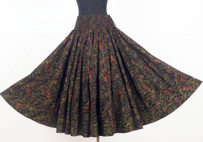 Die schön schwingenden Röcke sind aus sechs Metern hochwertigen Baumwollstoffs gefertigt. Sie haben einen hohen, gesmokten Stretch-Bund und passen bequem allen Größen von XS bis XXL. Es gibt sie in drei Längen, lang, kniebedeckt und kurz (L/M/S)