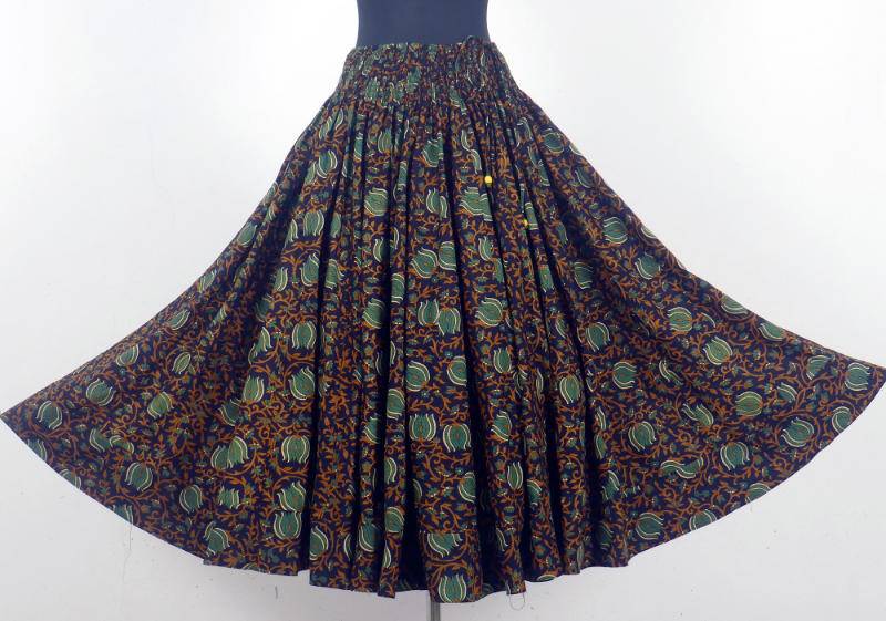Die schön schwingenden Röcke sind aus sechs Metern hochwertigen Baumwollstoffs gefertigt. Sie haben einen hohen, gesmokten Stretch-Bund und passen bequem allen Größen von XS bis XXL. Es gibt sie in drei Längen, lang, kniebedeckt und kurz (L/M/S)
