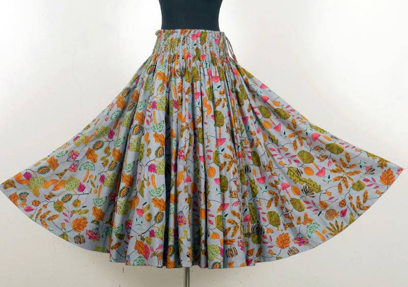 Die schön schwingenden Röcke sind aus sechs Metern hochwertigen Baumwollstoffs gefertigt. Sie haben einen hohen, gesmokten Stretch-Bund und passen bequem allen Größen von XS bis XXL. Es gibt sie in drei Längen, lang, kniebedeckt und kurz (L/M/S)