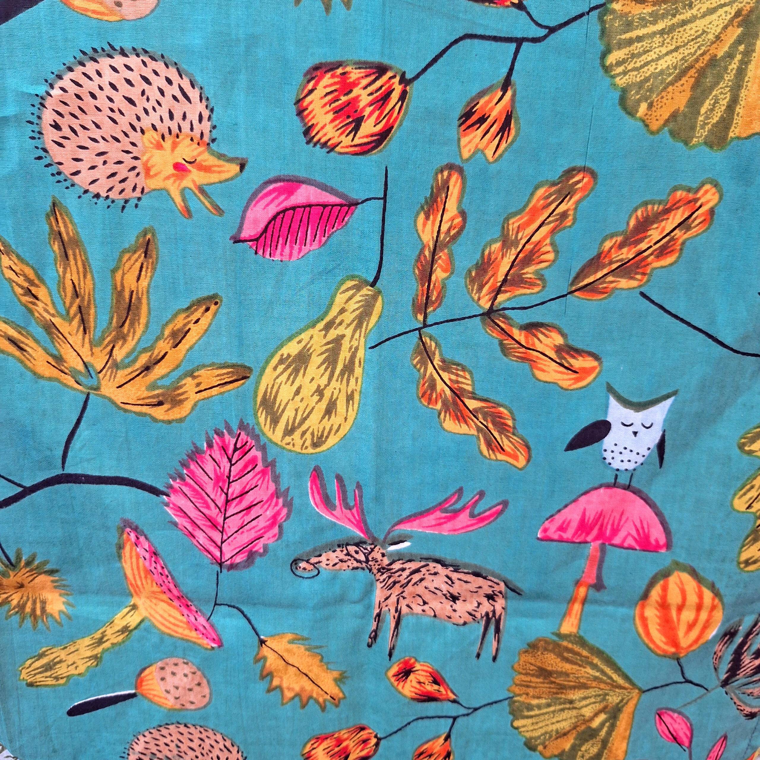 Material: sechs Meter teils handbedruckter Baumwollstoff